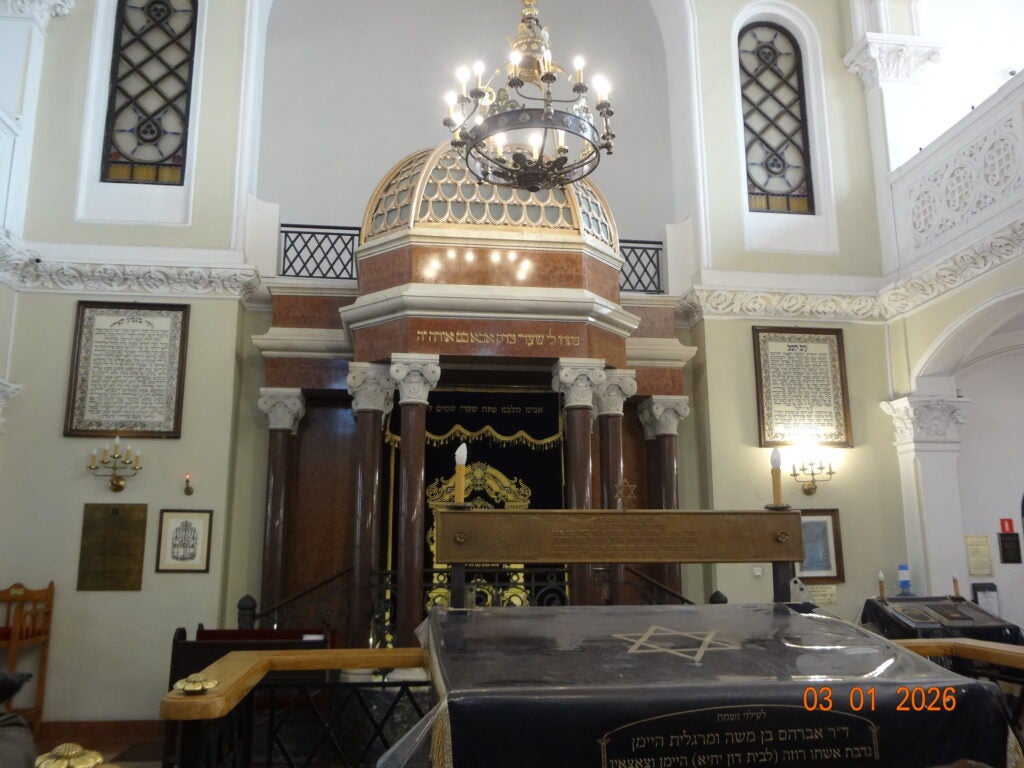 Nożyk Synagogue, the only remaining prewar synagogue in Warsaw. Here, we met the Chief Rabbi of Poland, Rabbi Michael Schudrich, and attended Purim services. Photo by Avanthika Suryadevara (H‘27).